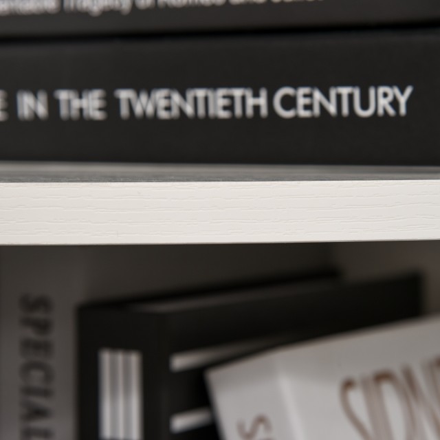 Τα ράφια είναι κατασκευασμένα από λακαρισμένο ξύλο, με λευκό χρώμα στο εξωτερικό και έγχρωμο στο εσωτερικό τους. Μπορούν να τοποθετηθούν εύκολα στον τοίχο, προσδίδοντας μοντέρνο στιλ στο σπίτι σας.