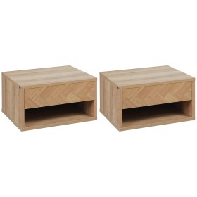 HOMCOM Σετ HOMCOM 2 Μοντέρνα Κρεμαστά Κομοδίνα με Συρτάρι και Ξύλινο Ράφι 37x32x21cm, Φυσικό Χρώμα 831-630V00ND