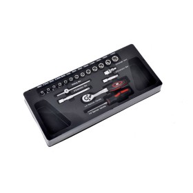 Περιλαμβάνει 18 εργαλεία κατασκευασμένα από ανθεκτικό ατσάλι CrV, ιδανικά για εργασία κάτω από βαριά φορτία. Κατάλληλα για επαγγελματικά εργαστήρια αυτοκινήτων και γκαράζ.